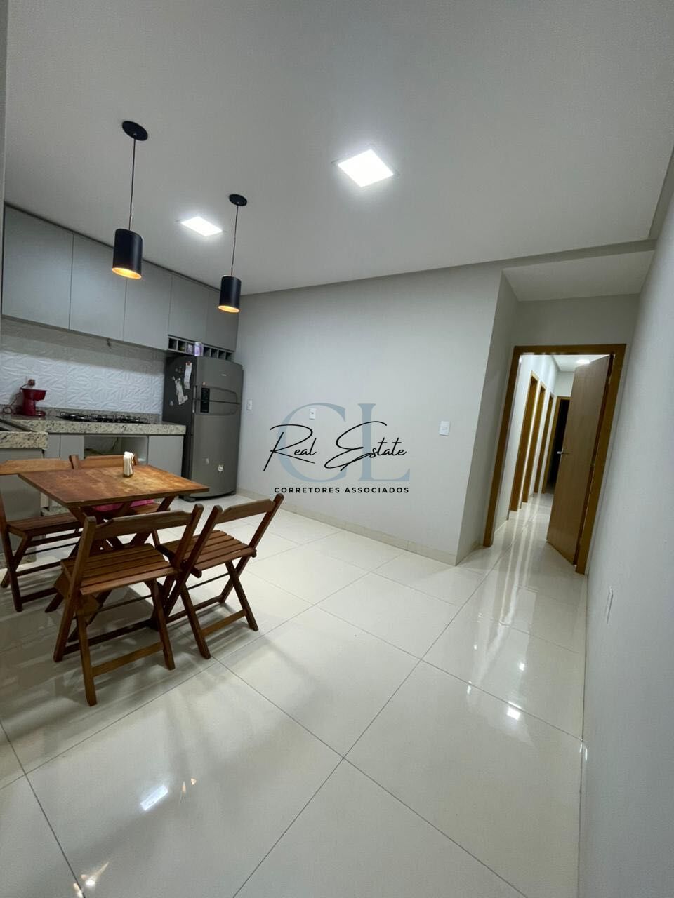 3 quartos, sendo 1 suíte com closet | 1 banheiro social | cozinha conjugada com sala de jantar | sala de estar | área de serviço | 2 vagas de garagem